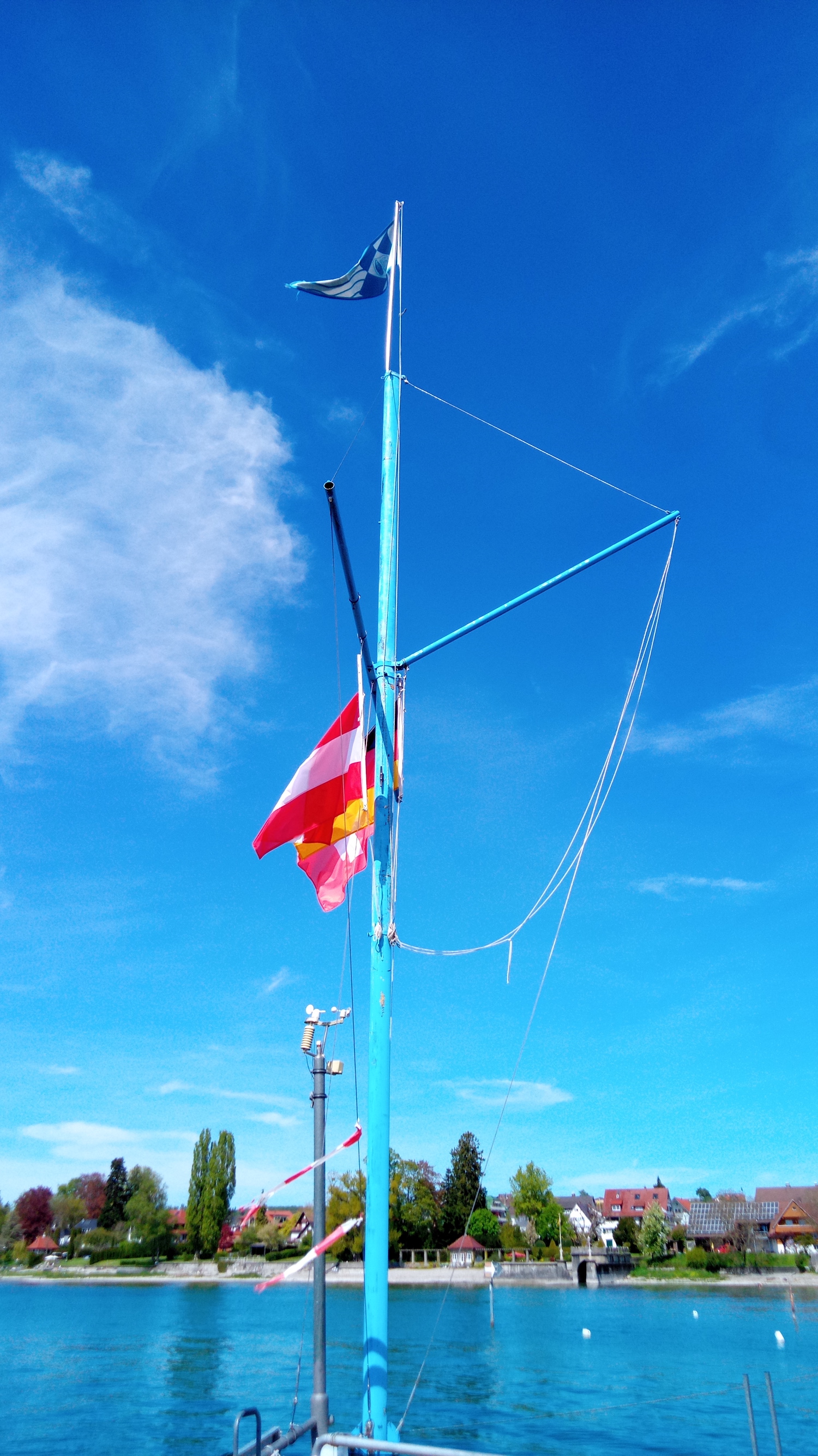 Die Segelsaison 2021 im Nonnenhorner Seglerverein ist eröffnet. Zwar hatte das traditionelle Ansegeln am 8. Mai wegen der Corona-Beschränkungen abgesagt werden müssen, zufällig fanden sich jedoch ein paar Seglerinnen und Segler gerade zu dem Zeitpunkt auf der Hafenmole ein, als der Vereinsstander am Flaggenmast gehisst wurde. Zufällig hatten sie auch ihre Signalhörner dabei und ließen sie trotz Mund-Nasen-Bedeckung ertönen. Vom See kam trötend Antwort von einem segelnden Boot aus dem NhSV.