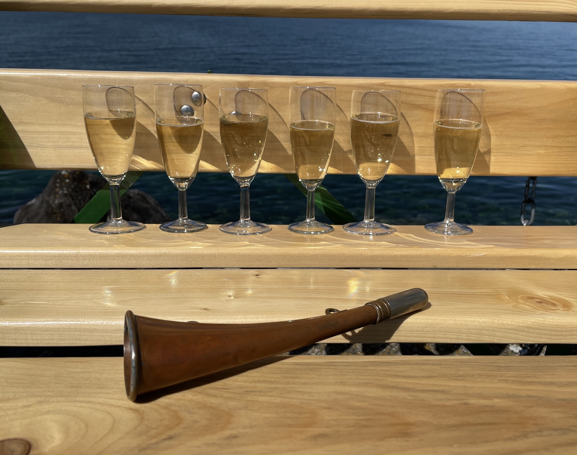 Takelmeister Stefan Witzigmann und Hafenmeister Wolfgang Semmlinger wünschten allen Vereinsmitgliedern im Namen der Vorstandschaft eine trotz Corona wind- und erfolgreiche sowie gesunde Segelsaison ohne Unfälle oder Havarien. Etwas Sekt floss auch.