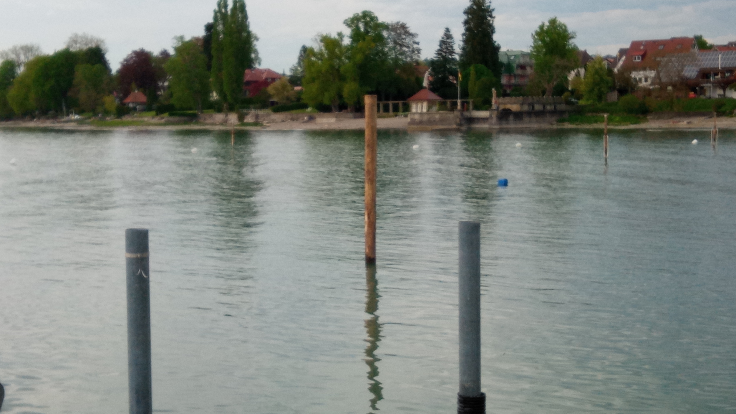 Der ist zwar länger als alle anderen Dalben und ganz gerade steht er auch nicht, aber er steht…