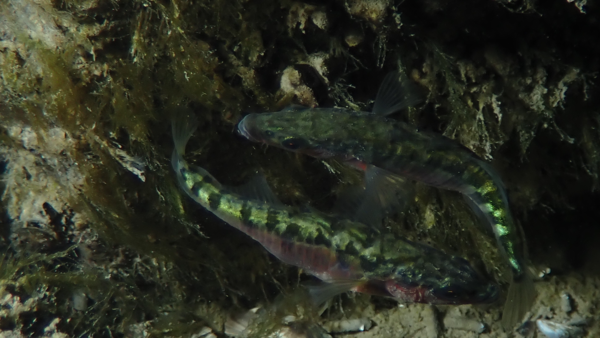 Auf dem Seegrund sind zwei Stichlinge unterwegs. Diese Fischart ist im Bodensee eigentlich nicht heimisch, nimmt aber immer mehr überhand.