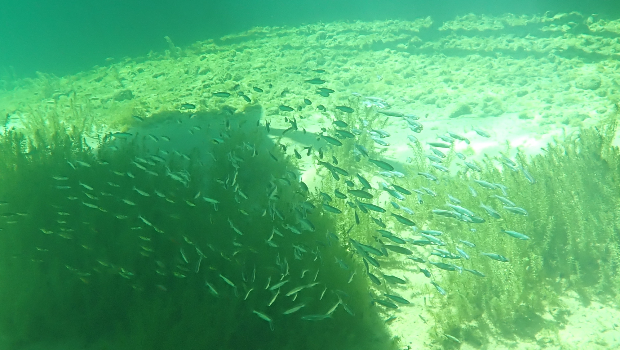 In einem Meter Tiefe nutzt ein Kretzer etwas Seegras als Versteck. Misslungen…