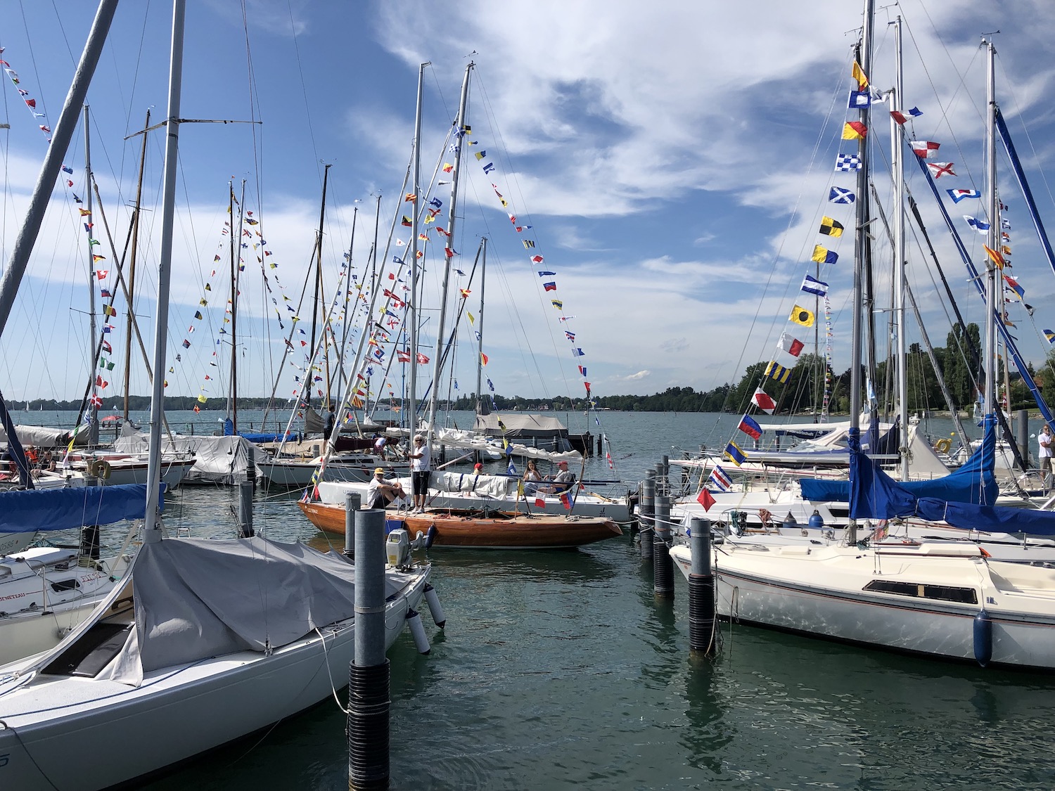 Gestartet wurde im sogenannten Känguruverfahren – das bedeutet nicht, dass die Boote über die Startlinie hüpfen müssen, vielmehr starten sie zeitversetzt so, dass sie annähernd gleichzeitig im Ziel sein sollten. Sollten. Denn bei den Vereinsregatten zählt Dabeisein und Spaßhaben ebenso wie der Segelsport. Deshalb schob sich das schnellste Boot nach 1 Stunde und 46 Minuten über die Ziellinie vor dem Hafen, das letzte nach 3 Stunden.