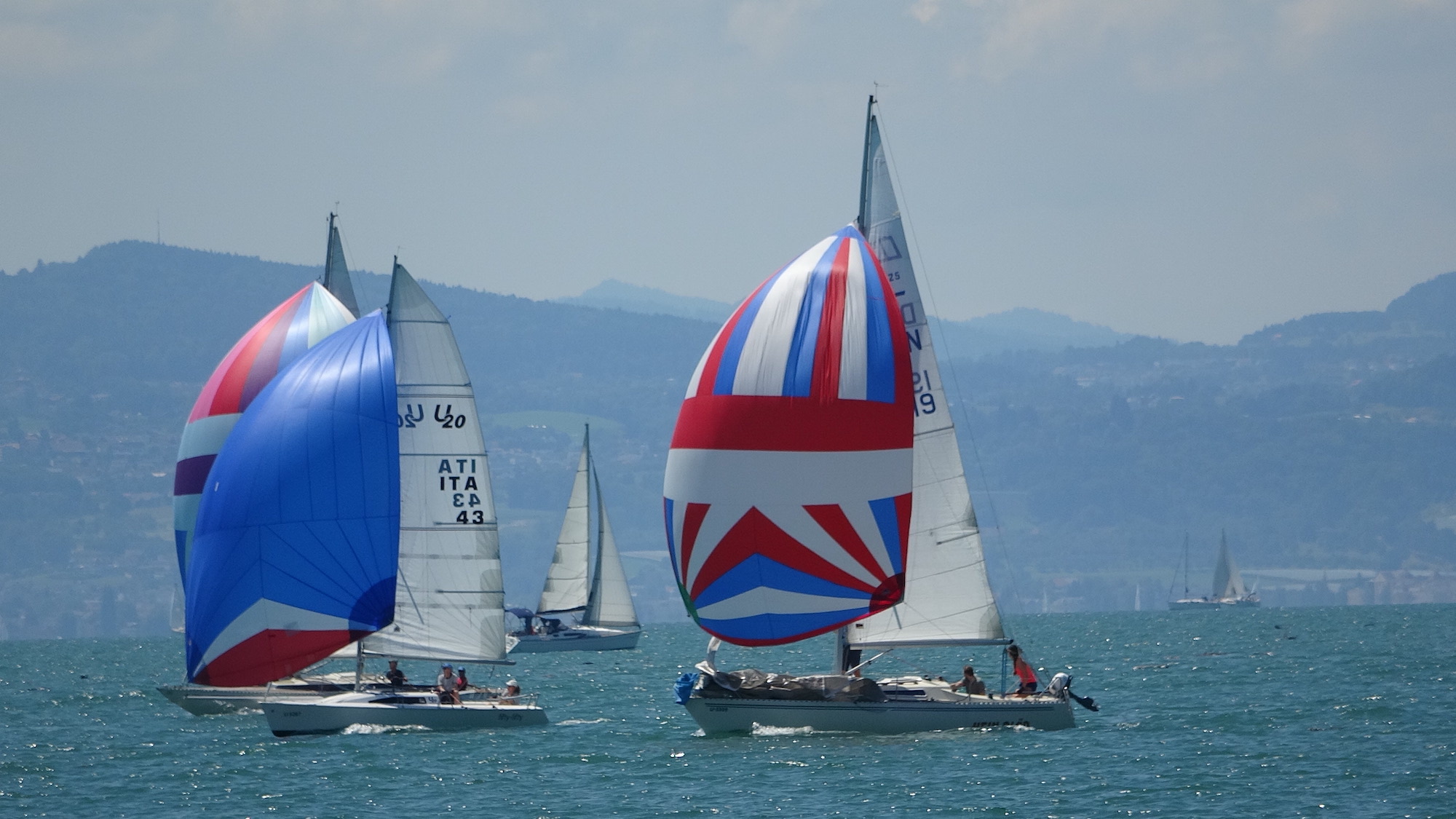 Der Regattakurs zwischen der Kressbronner Bucht und dem Nonnenhorner Seepumpwerk war so gewählt, dass die Boote mit ihren farbenfrohen Spinnakersegeln gut vom Seeufer und dem Schiffsanleger aus beobachtet werden konnten.