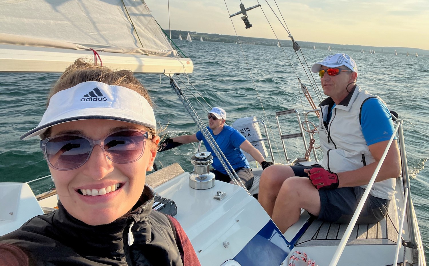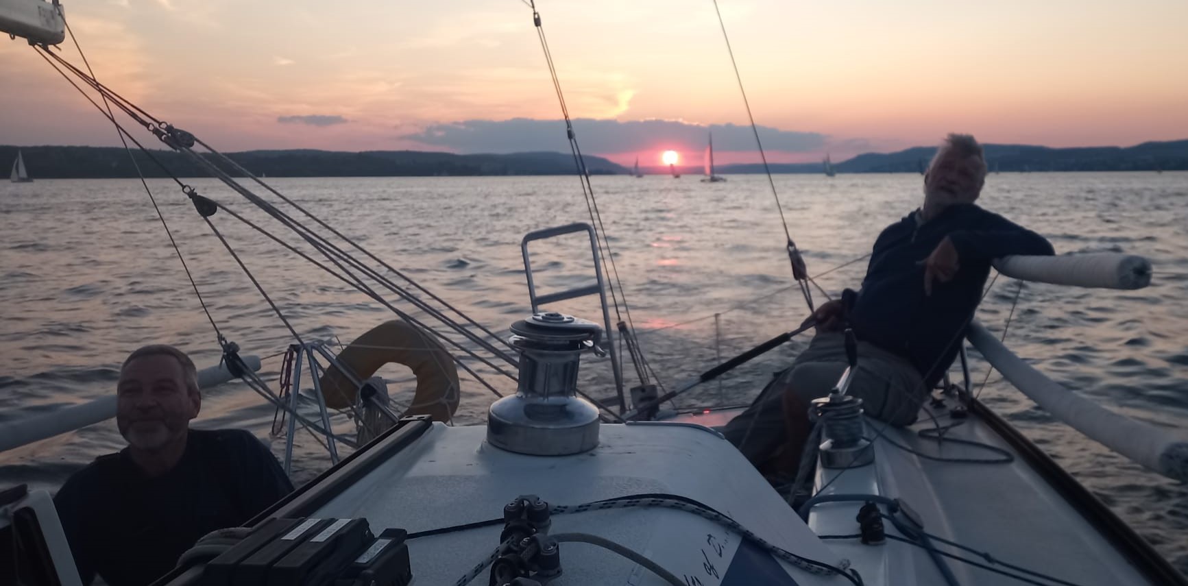 „Ich segle „RUND UM“ seit… da gab es noch Schwarzweiß-Fernsehen“, witzelt Andreas Nagel vor der Regatta. Für Michael Gierer ist es das erste Mal mit neuem Boot, einer Faurby330. Mindestens schon zwölfmal dabei gewesen sind Reiner Widmann (Larsen 25) und Dietmar Rödel (Senorita). „Das ist normalerweise ein gesetzter Familientermin“, die WhatsApp-Gruppe dazu heißt „Beschde Segelcrew“ und zeigt ein gut 20 Jahre altes Foto mit den Kindern. Dietmar Rödel erhofft sich vom neuen Start in drei Gruppen nacheinander einen etwas entspannteren Regattabeginn. Und wie alle anderen wünscht er sich Wind. „Ein einziges Mal haben wir es innerhalb der erlaubten 26 Stunden nichts bis ins Ziel geschafft“, sagt Andreas Nagel. Und Dietmar Rödel findet: “Wenn du es durchgestanden hast, ist es jedes Mal schön!“
