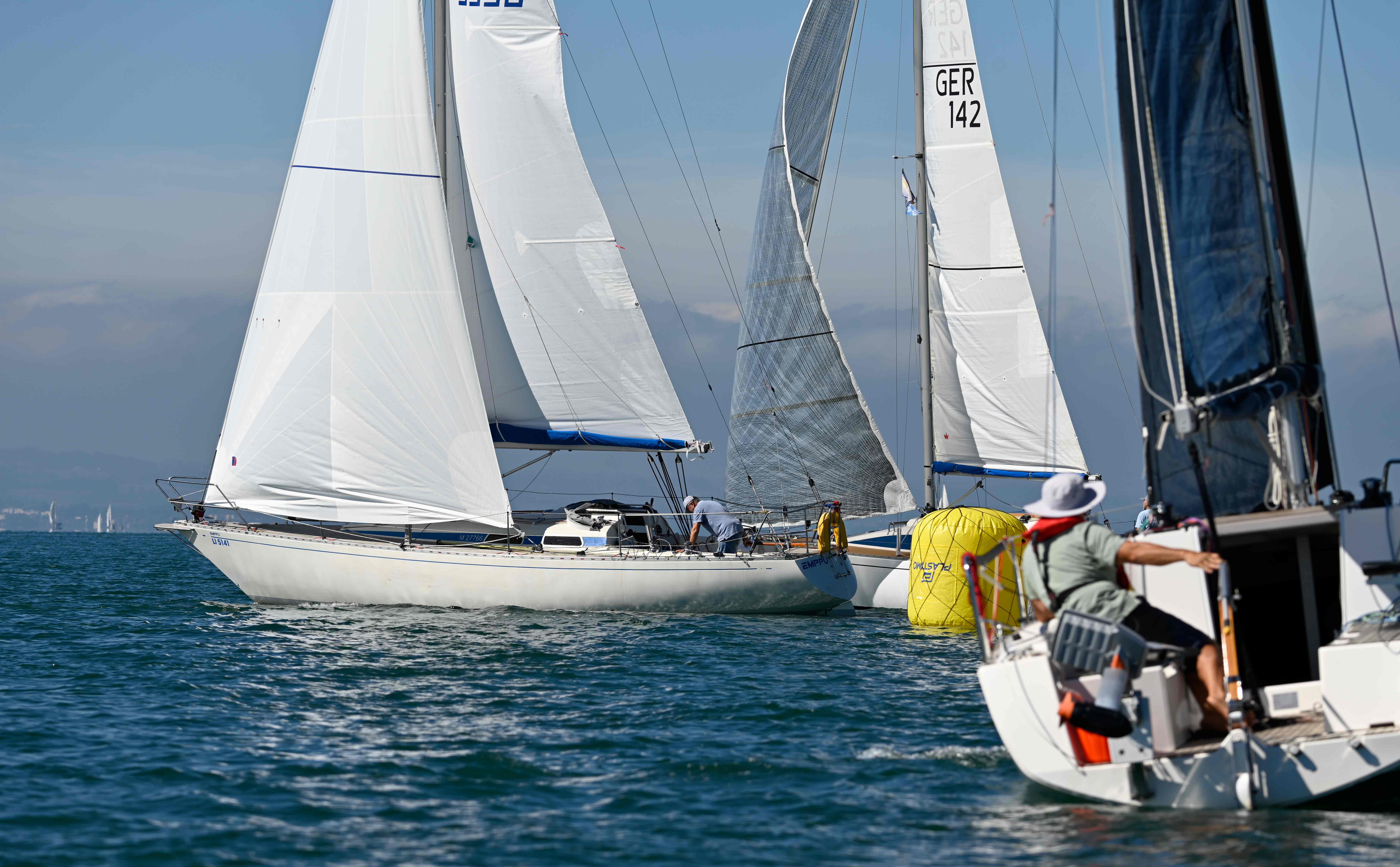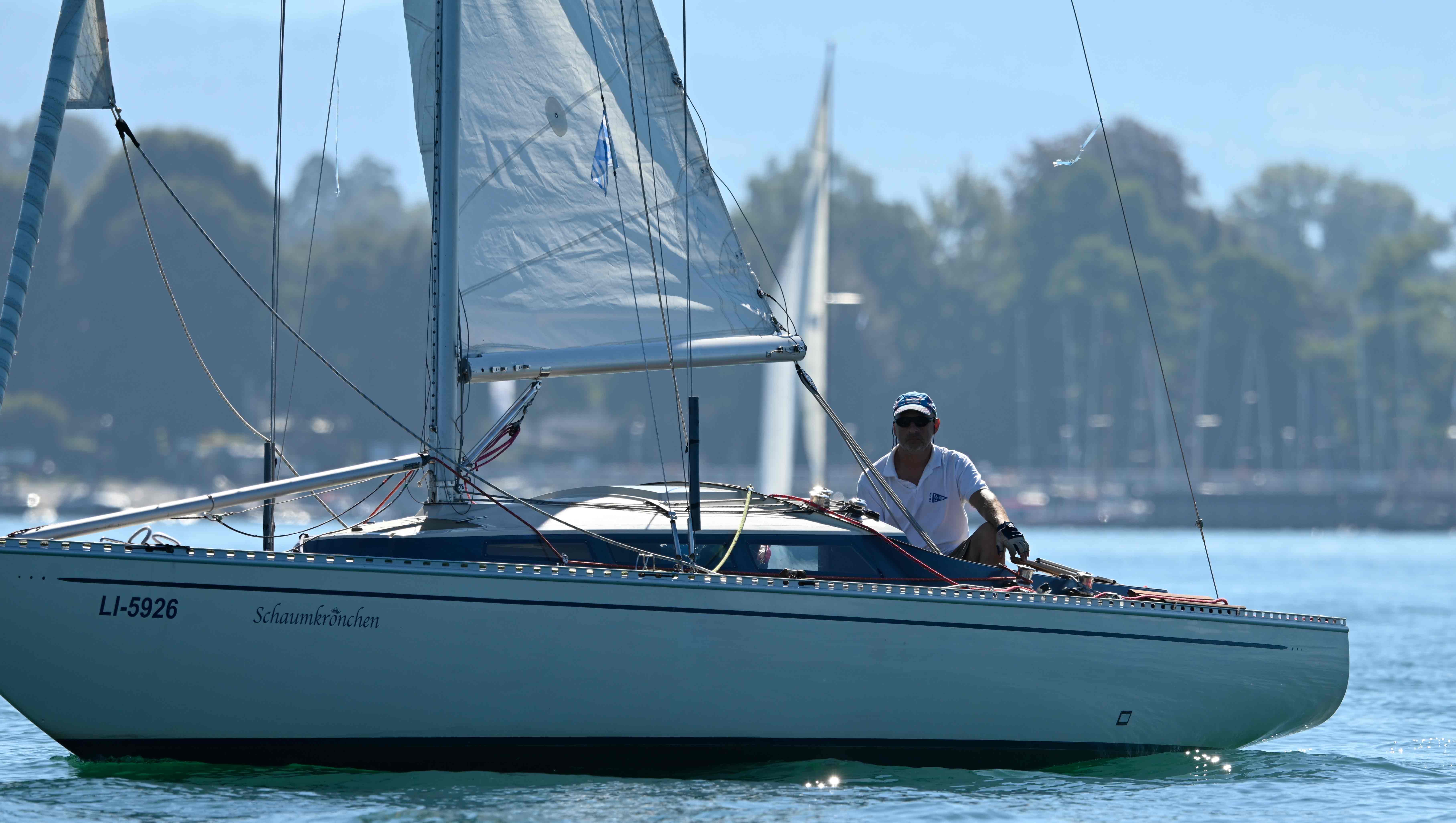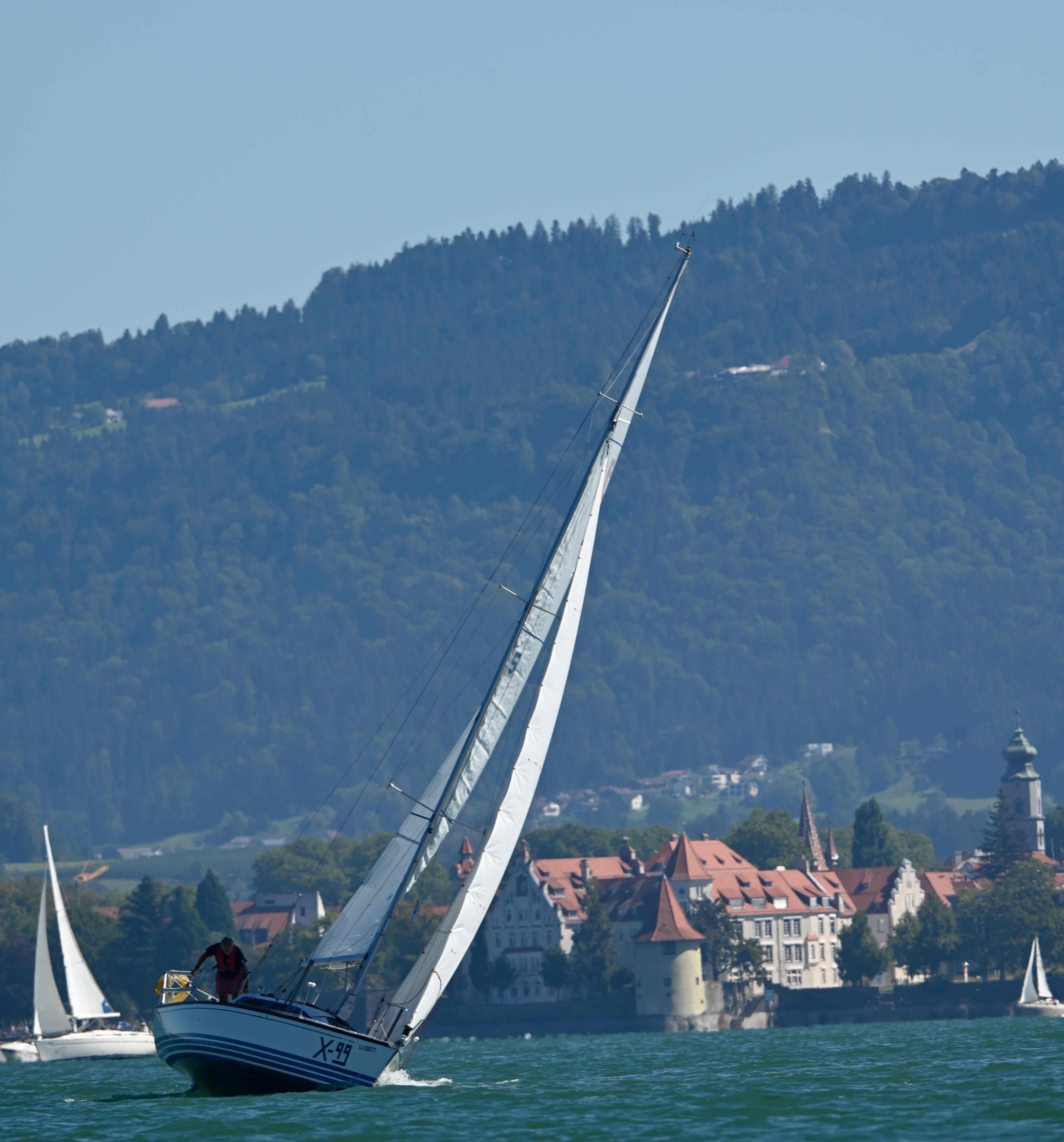 Der Bodensee eine einzige Glitzerfläche in der Sonne, darüber frühherbstlicher Dunst – zur Nonnenhorner Einhand-Regatta Anfang September war das Segelwetter ideal. Bei anfänglich leichtem Wind aus Südost, später bis zu drei Beaufort, starteten 27 Boote. Neun waren vom Nonnenhorner Seglerverein dabei, der Jüngste 17, der Älteste fast 85 Jahre alt. Die übrigen Teilnehmer kamen bis von Konstanz, Überlingen, Meersburg und Romanshorn, nur zwei (!) von ihnen Frauen.