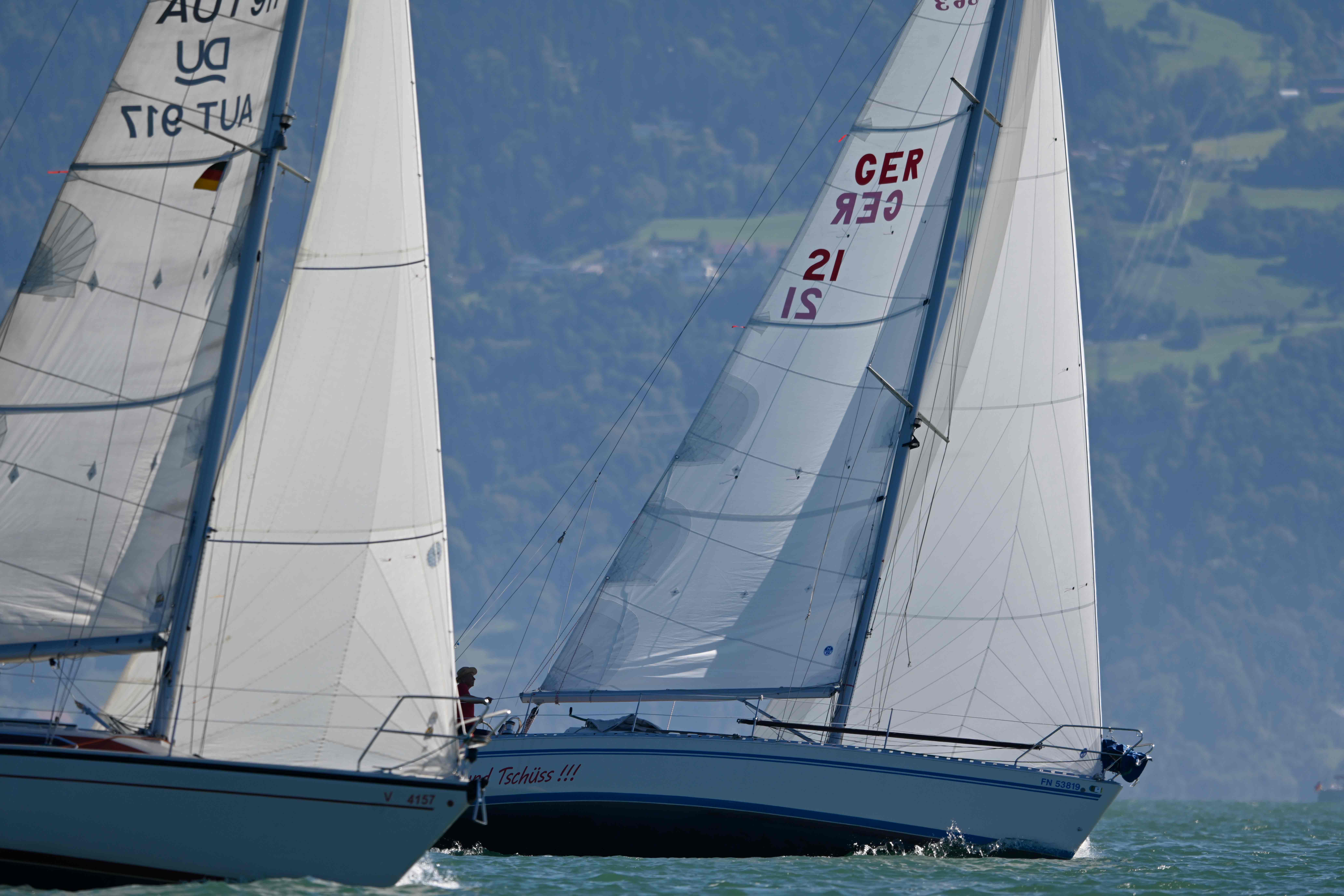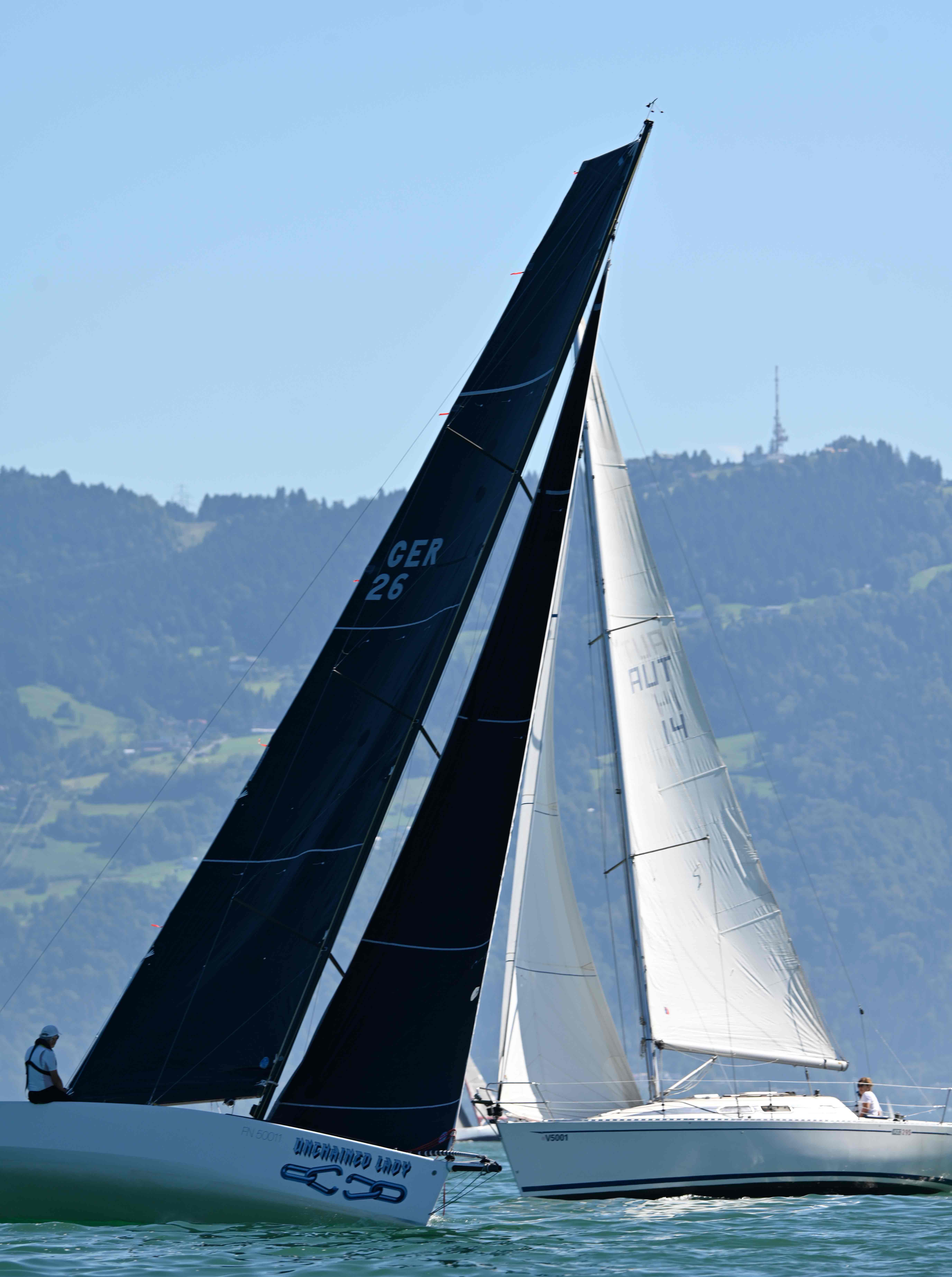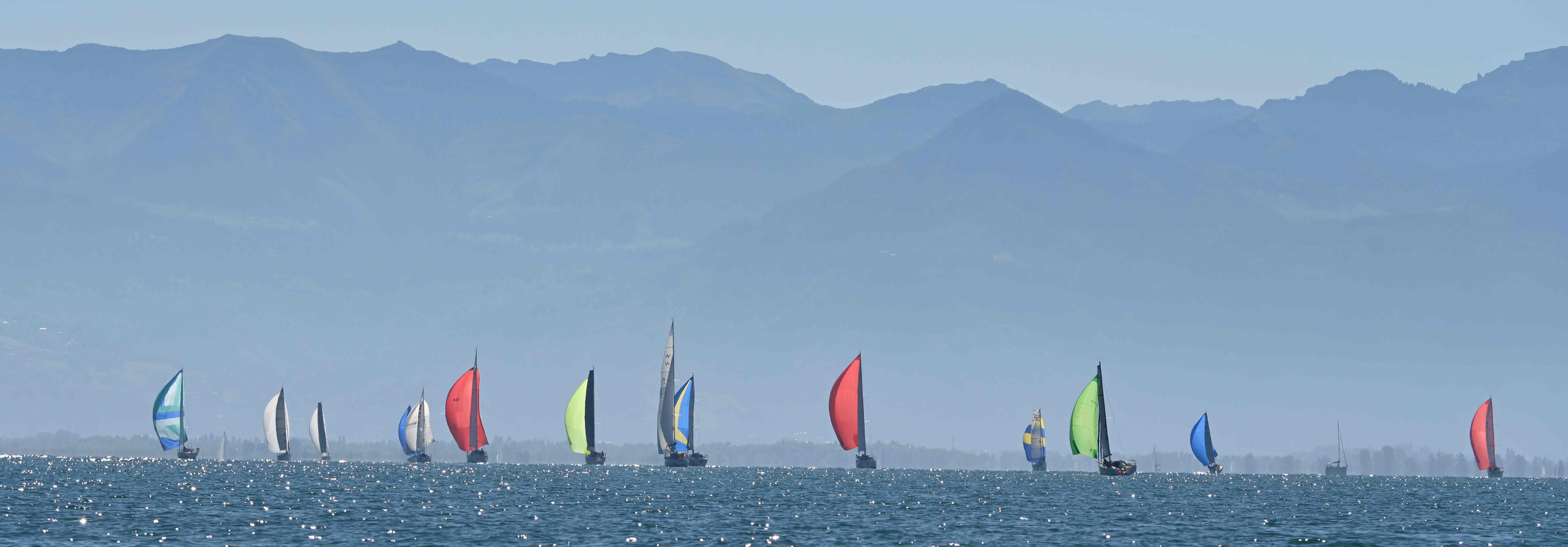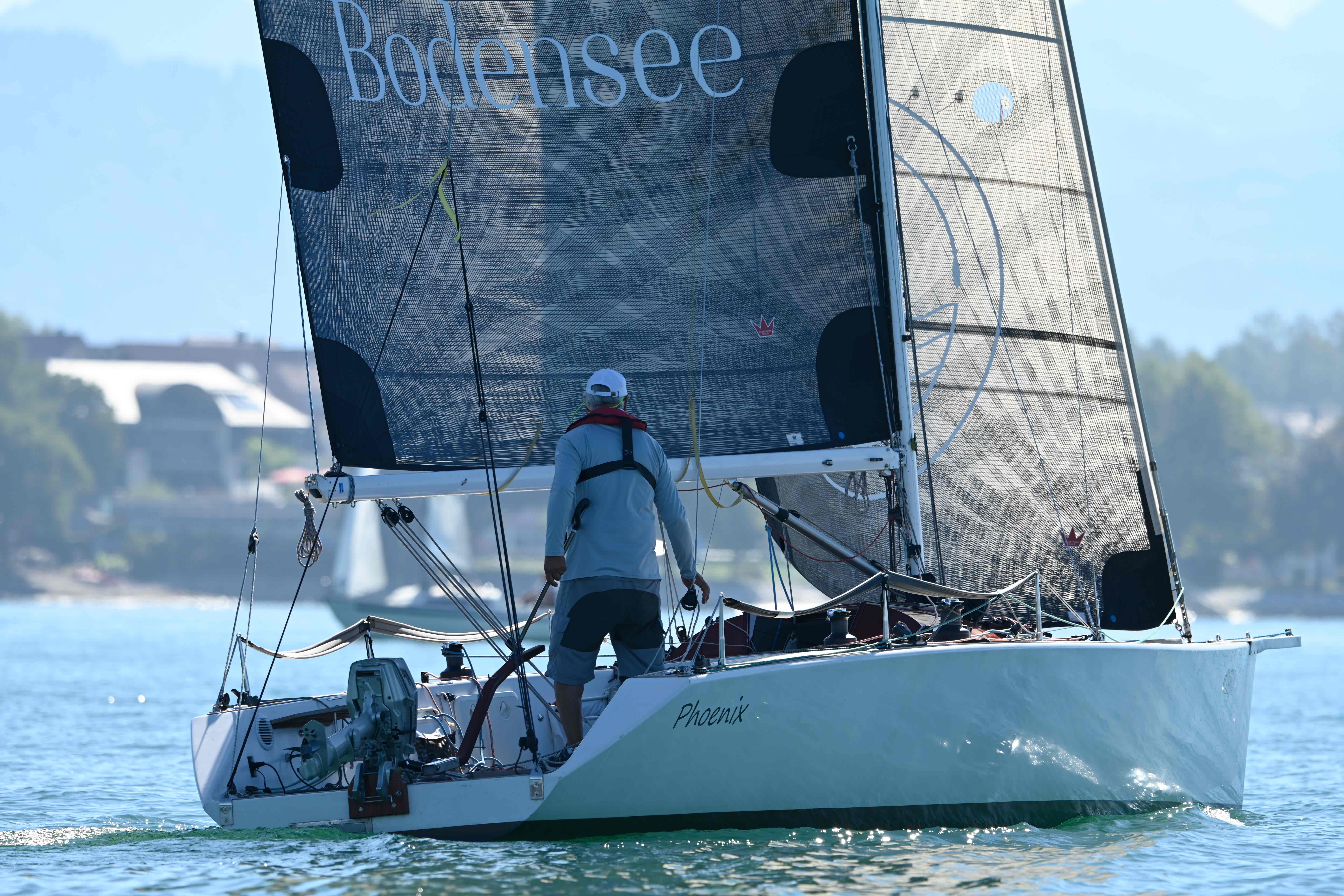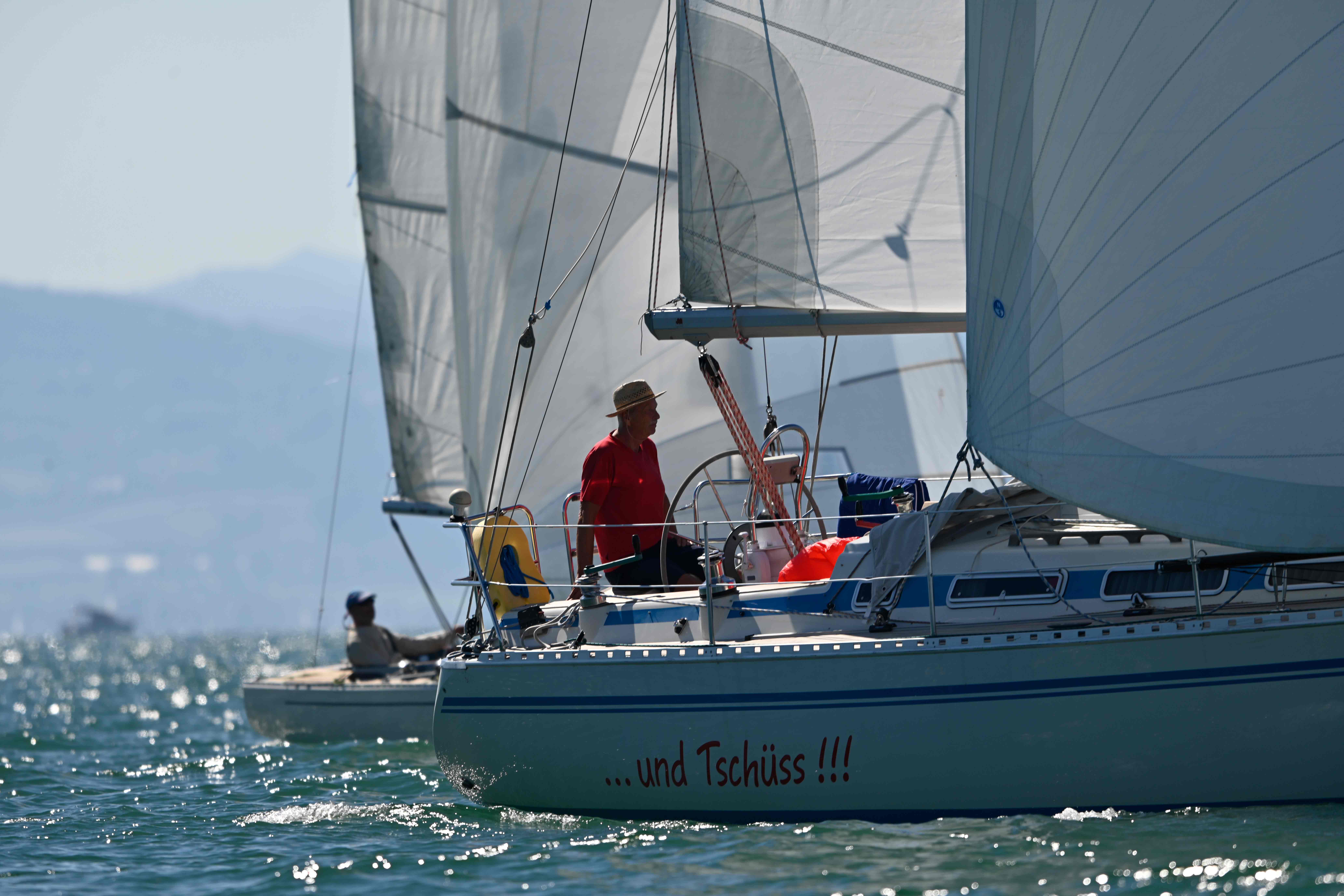 Bei der Nonnenhorner Einhand-Regatta legten die Boote gut zwölf Seemeilen zurück. Von der Start- und Ziellinie vor Nonnenhorn ging es zum „Alwinder Berg“, das ist die durch die Seezeichen 60A-C markierte Untiefe vor Bad Schachen. Dann galt es, die gelbe Luvtonne vor Altenrhein zu runden und schließlich ins Ziel zu kommen. Der Schnellste schaffte das – mit fast 20 Minuten Vorsprung - in knapp zweieinhalb Stunden, das langsamste Boot querte die Ziellinie nach gut vier Stunden.